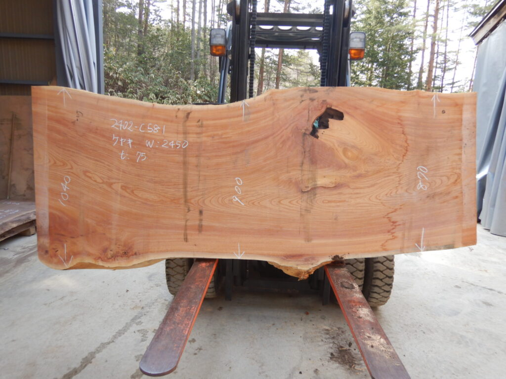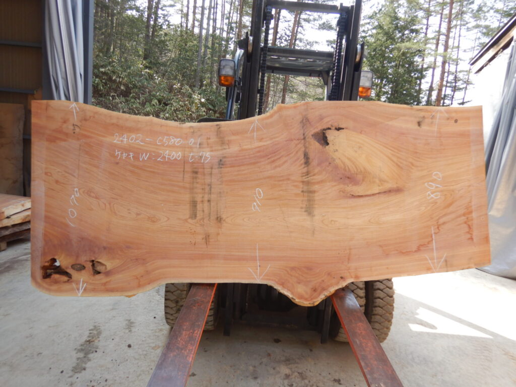 【品番】2402-c581 【樹種】ケヤキ 【寸法】厚み75㎜×巾870㎜~1040㎜×長さ2450㎜ ※商品写真は入荷時のものの場合があります。 ※タイミングによっては品切れの場合がございます。あらかじめご了承ください […]