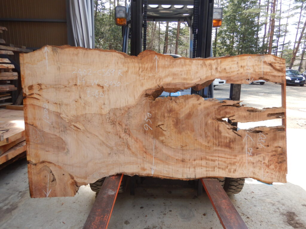 【品番】2402-c569 【樹種】トチ 【寸法】厚み60㎜×巾950㎜~1500㎜×長さ2050㎜ ※商品写真は入荷時のものの場合があります。 ※タイミングによっては品切れの場合がございます。あらかじめご了承ください。