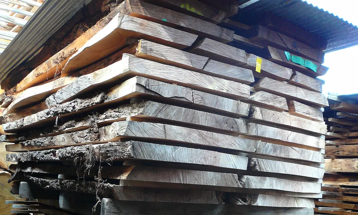 木取りされた材は、乾燥する間に汚れやの表面が削られて、表面の汚れや染みが